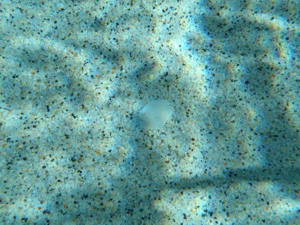Here is a pebbled pool that had some debris embedded in the finish. This is a common problem, whether it’s organic impurities (seeds, flower pods, leaves and even dead bugs), or trash from the pebble crew (Yuck), it can drive pool owners crazy. I am surprised sometimes at just what can be seen by the pool owner (I often wonder if they are in the pool with a magnifying glass looking over every square inch of the surface) and by what I find embedded into the finish (yuck). This pool had two such spots, both were construction material. I only took pictures of this one.